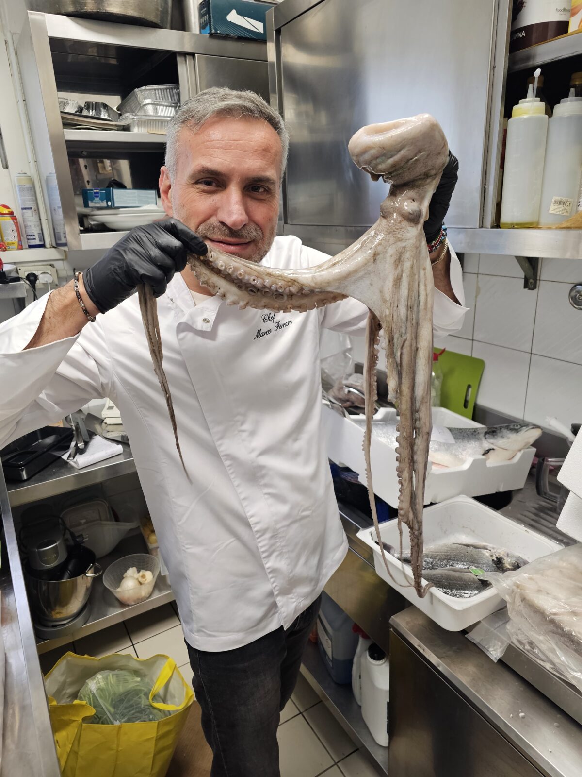 Nel cuore della nostra cucina c’è un uomo che ha fatto del mare la sua casa e della cucina la sua più grande passione: lo chef Marco Ferrari. Con un passato che lo ha visto solcare gli oceani come sottufficiale della Marina Militare, oggi porta tutta la sua esperienza e il suo amore per il mare direttamente nei piatti di “DA POLPO“, rinomato ristorante di mare a Tivoli.